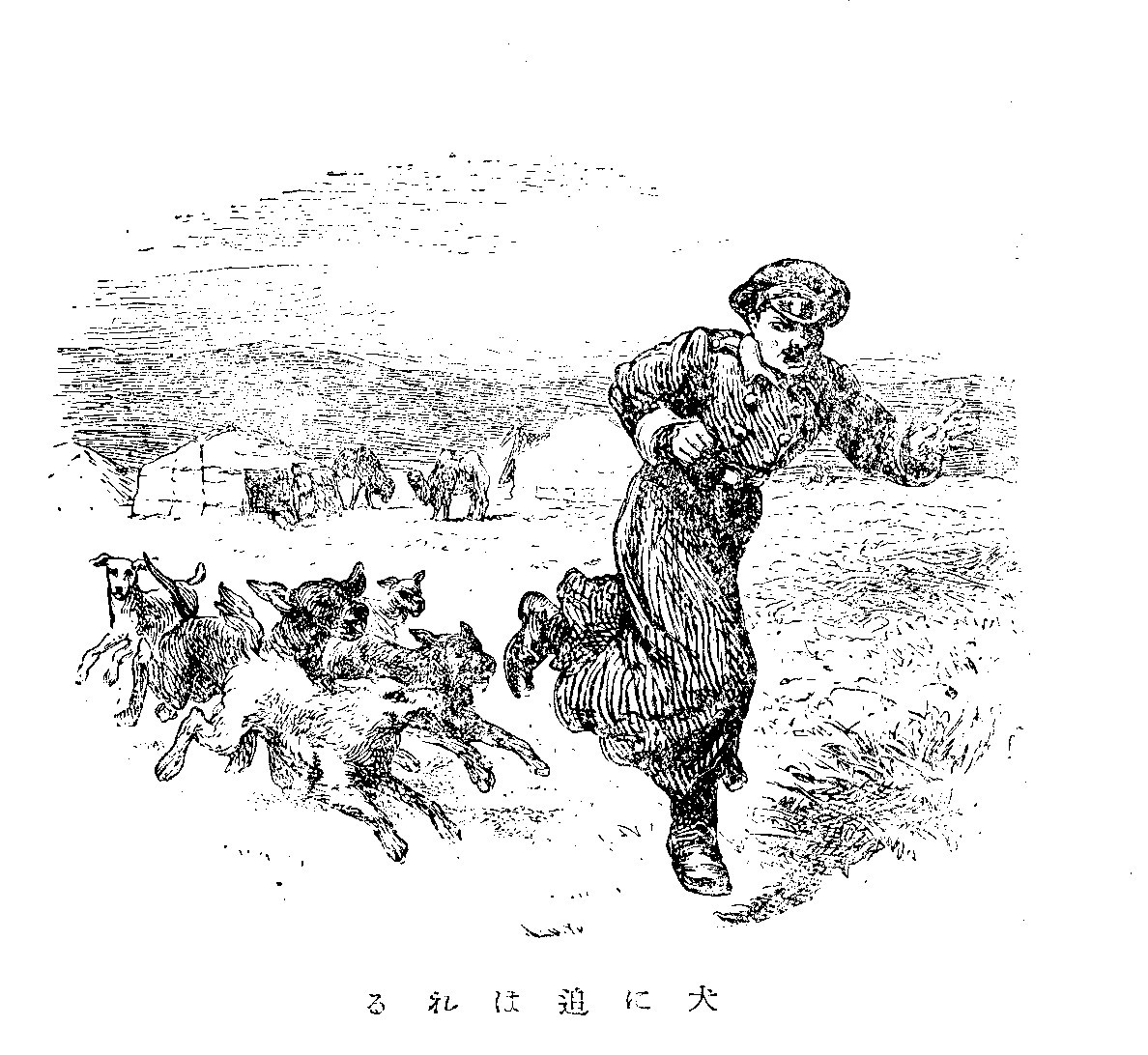 彼は危険を慮ることなく、不注意にゲルの方を逍遥したのである。すると少し離れた平原上にいた犬が、