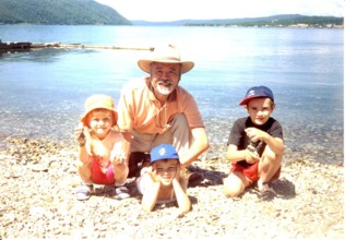 (写真3:バイカル湖畔でロシア人の子供たちと遊ぶ 2002年7月)叔父の私へのお土産は、シベリアで買ってきた革靴でした。革靴の紐穴は、左足が八列で、右足 が七列というようなちぐはぐのものでした。その時は、そそっかしい叔父が、間違えて買ってき たものと思っていましたが、後にモンゴルに来てみて、それはごく普通のことだと理解できまし た。実に、五十年もたって真相が判明したというわけです。