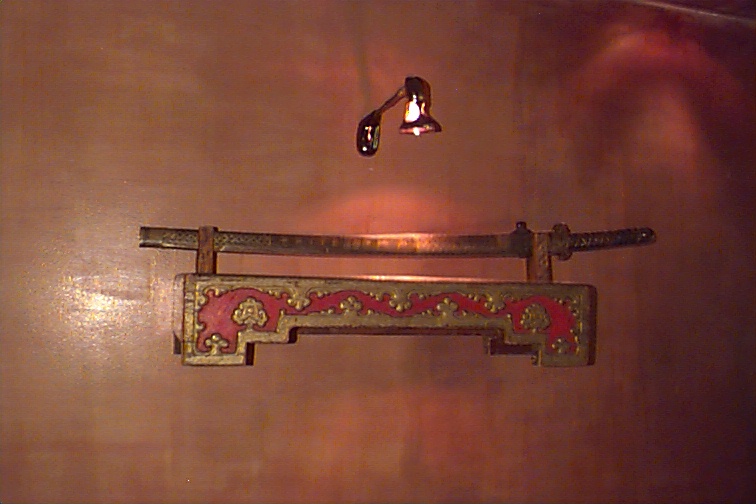 「これは侍が使っていたものですか?」とホーギーが聞くので、壁に近寄って見るとやや小ぶりのその刀の鞘には、昭和15年と漢字が書かれてありました。
