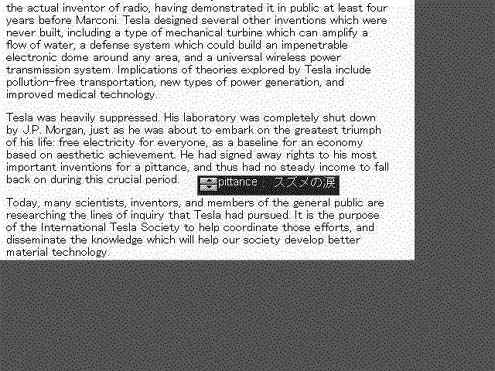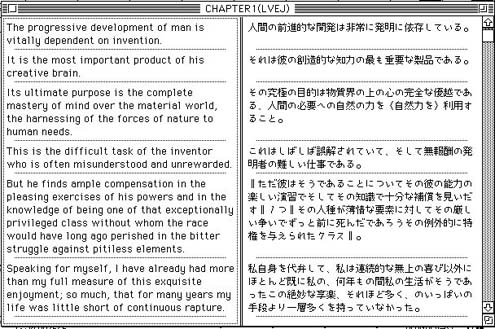 図5はエジソンと同時代の発明家ニコラ・テスラ(Nikola Tesla)の自伝の一節を「LogoVista E TO J (Ver.2.5)」で処理したものである。