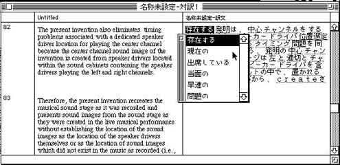 訳文が的外れの場合はアンダーラインの入った部分をダブルクリックすると訳語の候補が表示されるので適当なものを選択する。