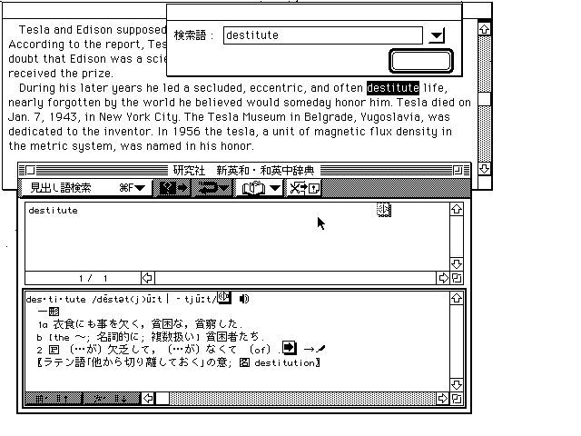Macintosh」は英文テキストの翻訳とインターネットのホームページに書かれた英文データを日本語に訳す、一本二役の英日翻訳支援ソフトである。