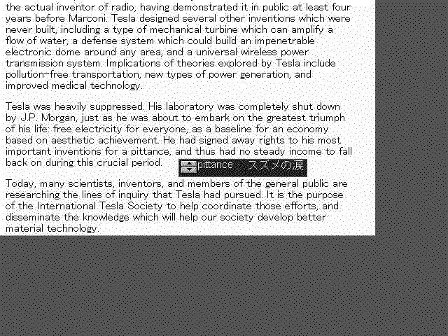 図6LogoVistaによる翻訳例はエジソンと同時代の発明家ニコラ・テスラ(Nikola Tesla)の自伝の一節を「LogoVista