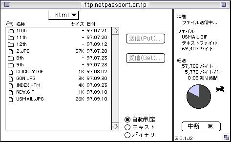 「FetchーJ」を終了した後、WWWブラウザを立ち上げて表示が正しく行われるかどうか確認する。画像が表示されなかったり、リンクが繋がらないケースもあるので丹念に確認する。不具合があれば送信するファイルを点検修正した後、「FetchーJ」で送信してファイルを置き換える(リモート・ファイルは内容を読んだり、ファイル名の変更、ファイルの削除はできるがファイル内容の修正はできない)。