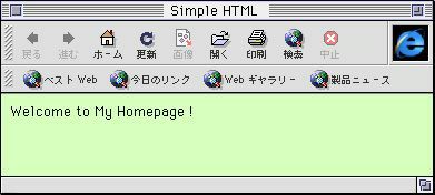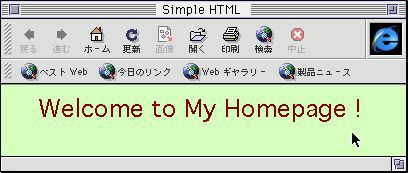 HTML"と表示され、ウインドウには"Welcome to My Homepage !