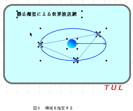 マウスで領域指定をすると図8のように各オブジェクトのハンドルが表示される。