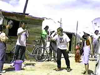 ハラホリンに向かう道沿いのドライブイン?で。あまりの暑さに、二三日前からウランバートルで突如流行りだした霧吹きによる水掛けごっこで遊んでいる様子。乾燥しているモンゴルではこれを顔や腕に吹き付けるとけっこう涼しい。